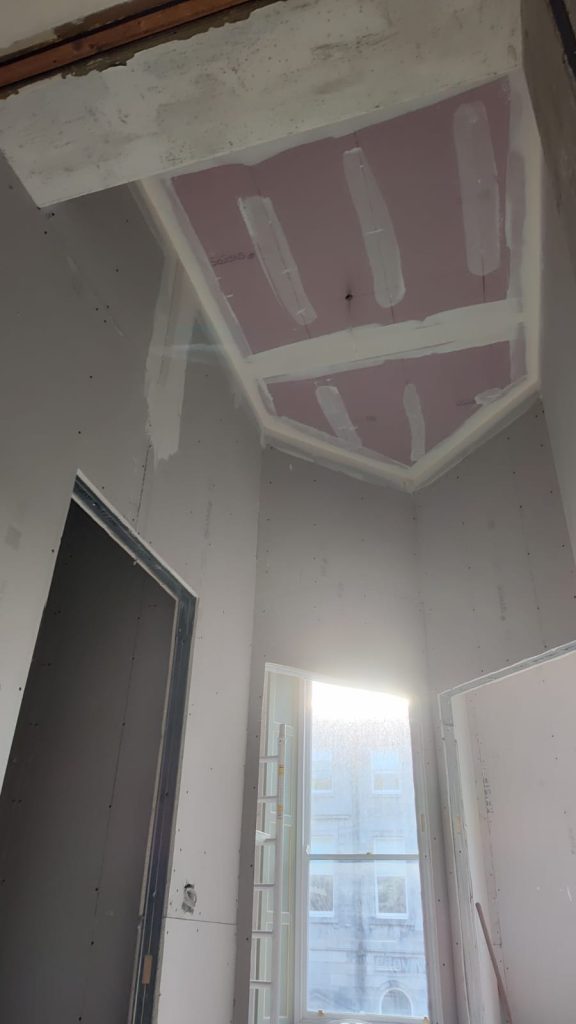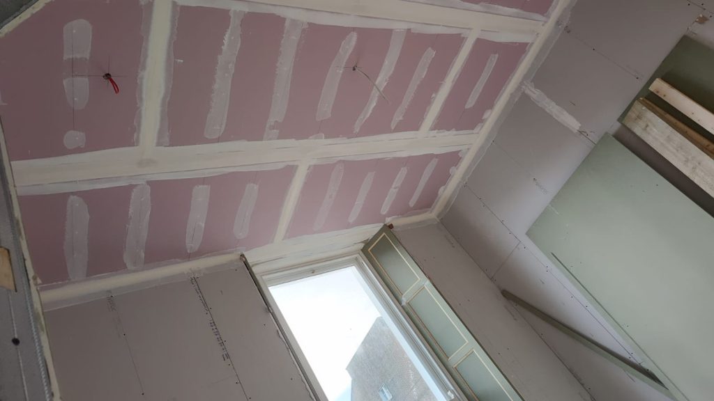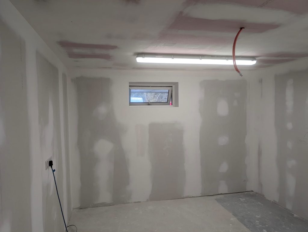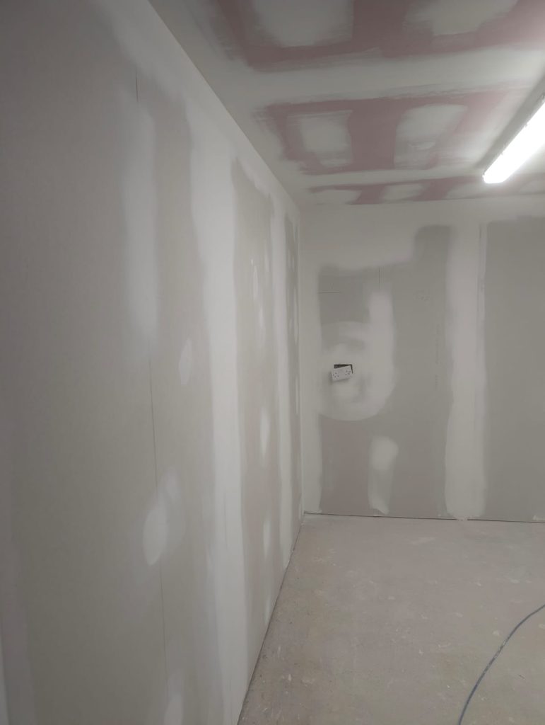 - Tape and joint finishing for new plasterboard walls and ceilings